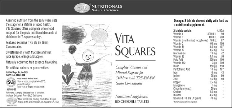 Note: As calcium and magnesium are macrominerals - meaning they are required in the diet in large amounts - they were too bulky to include in the Vita Squares formulation, but good sources for both are Cal-Mag and Nutrishake, respectively, both of which are part of the GNLD’s “Feel Better Programme” for Children.